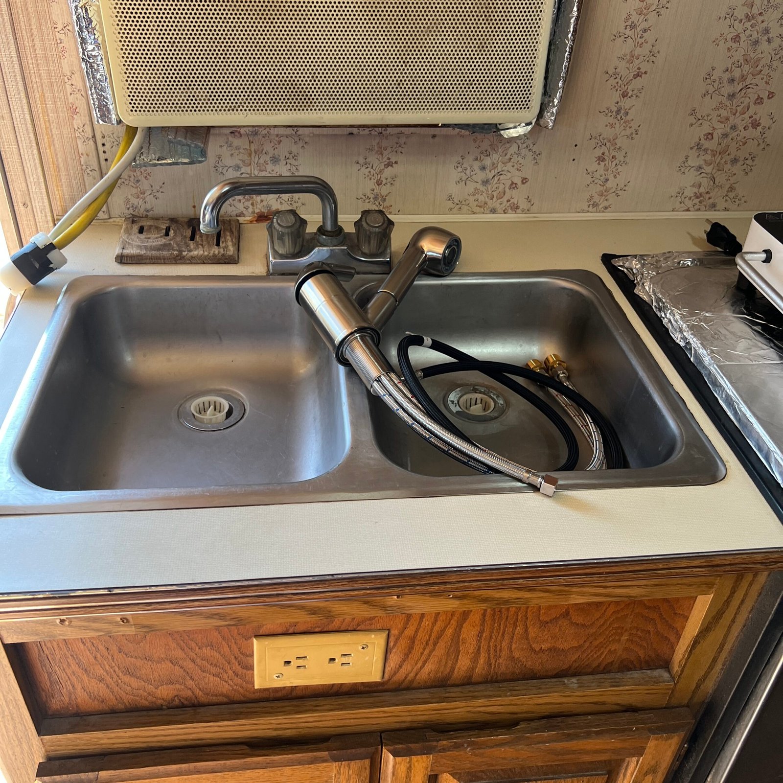 3. I recently put more than $1200 into it, replacing the entire electrical board (breakers and fuses) and having most of the plumbing replaced with fancy new PEX and copper connectors. Prior to that, I replaced most of the lights with new, dimmable LED fixtures and replaced all 4 ceiling vents with entirely new vents, sealant, and the tinted shade outer covers. While I was on the roof, I added a new, $200 cover to the AC unit, even though I don’t use it (see below). Interior hinges and pulls were also replaced, along with new door locks. I have more light fixtures ready to be installed, along with plenty of other new parts that I didn’t get around to installing, including: a brand new toilet, new vent pipe covers, a new fridge vent cover, new faucet and shower head for shower, new window for door, and more. All that comes with it and I’m leaving a handy portable heater and a new electric hotplate, too. The little kitchen sink is stainless and has a new pull up faucet (may or may not be installed). It also still has the original generator, although I have never used it. It also comes with sewer hoses, connectors and a new pressure regulator.
