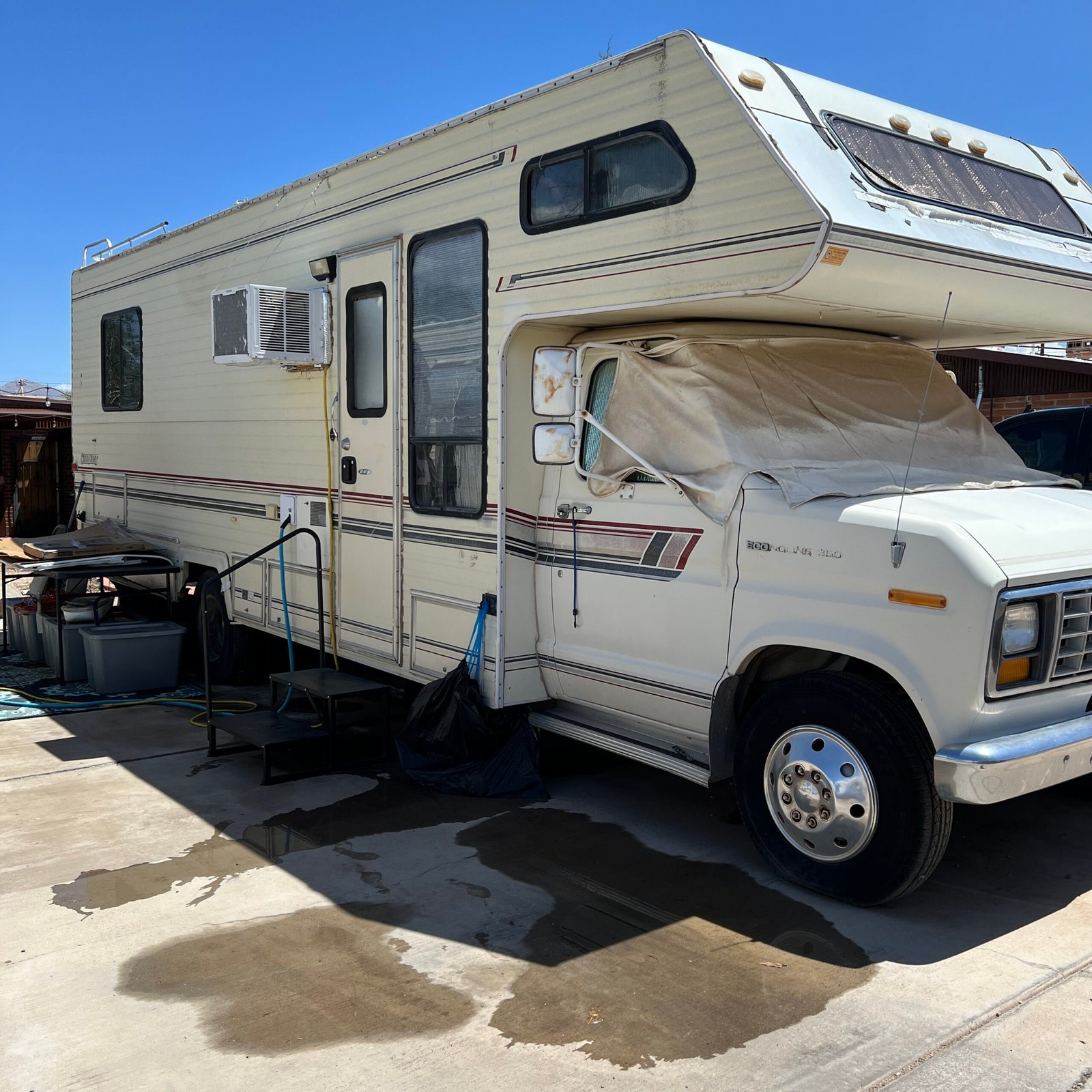 For Sale: 1989 Gulf Stream Conquest, Class C RV, Ford 350 Gas Motor, 27 feet in length, New AZ Title. It runs. Located in Tucson, AZ, currently parked in storage. $2000 obo.